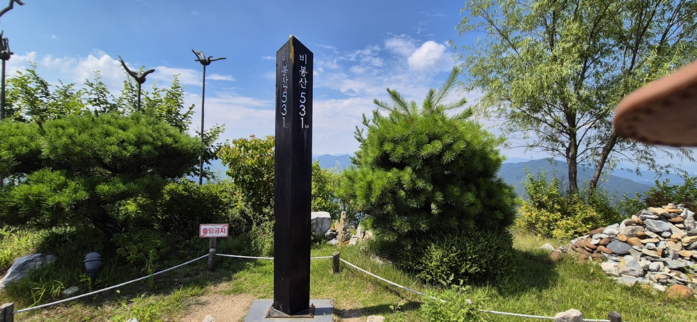 비봉산(531m)은 봉황새가 알을 품고 있다가 먹이를 구하려고 비상하는 모습과 닮았다고 하여 붙여진 이름이다