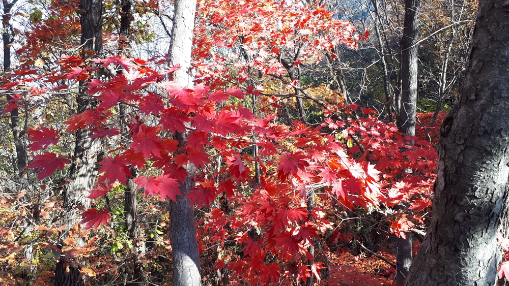 가로수로 단풍나무가 많이 심어져 있고 도로 양편으로 자연생 단풍나무가 많고 또 단풍이 곱게 들어 있었습니다.