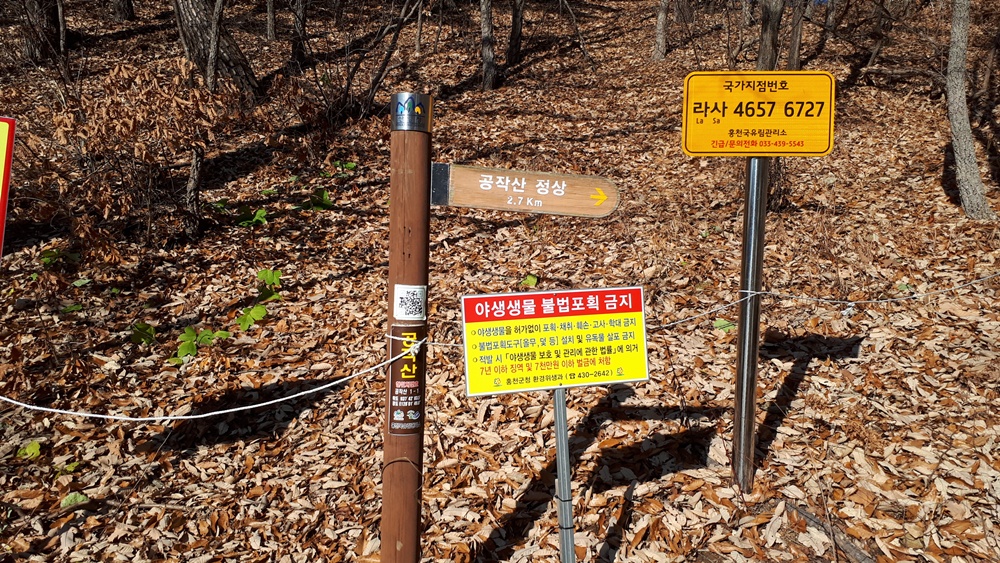 09:50 공작현 이정표에 공작산 2.7km이라고 표기된 것을 읽으며 산행을 시작합니다.