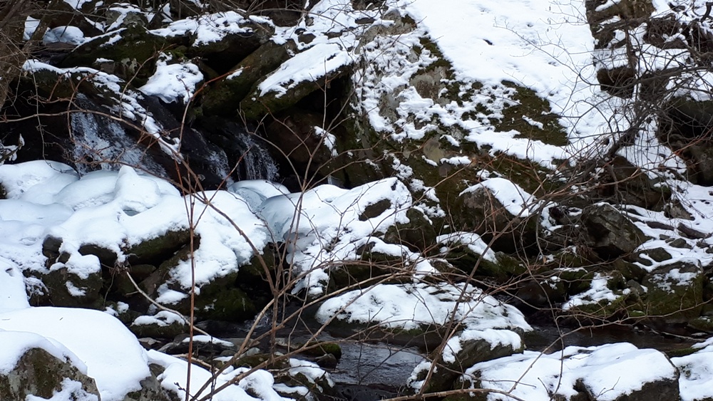 골짜기 바위는 눈 덮인 사이로 푸른 이끼가 덮여 있는 것으로 보아 항상 습기가 가득한 지역임을 짐작할 수 있었습니다.