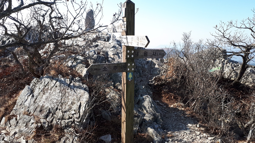 이정표는 능선에서 2.1km를 가면 천성산2봉이라고 적혀있었습니다.