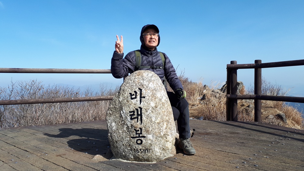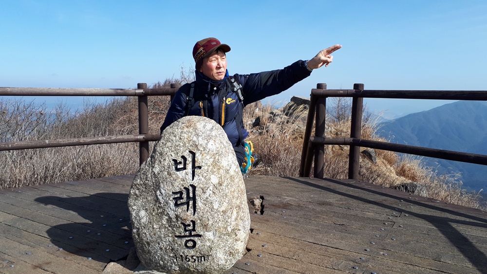 11:15 산 정상 바래봉(1,165m)에 도착하여 여러 폼으로 인증샷을 하였습니다.