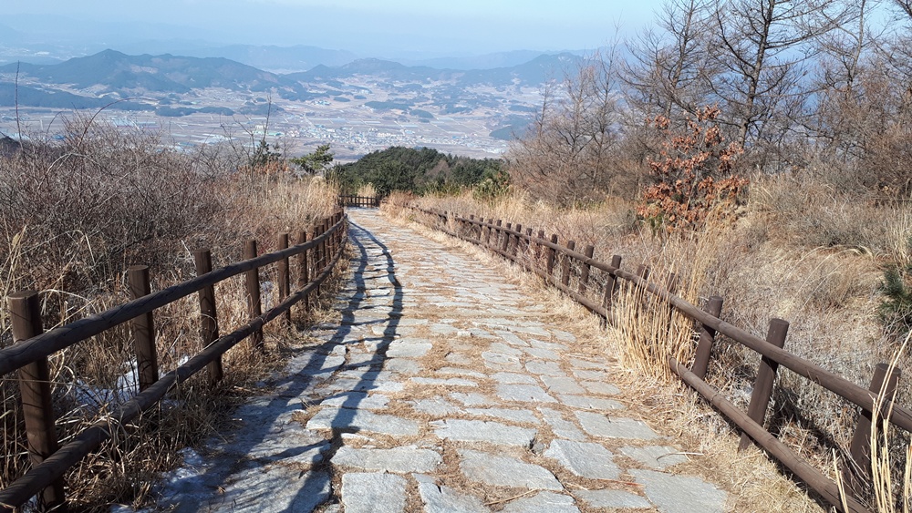 한참을 걸어 올라가자 임도에 넓적한 돌 또는 인조돌로 포장을 하여서 걷는 느낌이 딱딱하였으나 비가 오면 길바닦이 패이지 않게 하기 위함임을 짐작할 수 있었습니다.