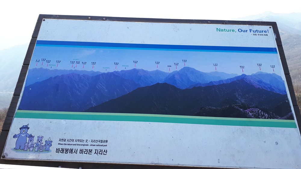 전망대에는 이곳에서 바라보이는 지리산 천왕봉, 반야봉, 노고단, 만복대, 고리봉 등을 사진 위에 표시하여 놓아서 지리산을 조망하기 좋았습니다.
