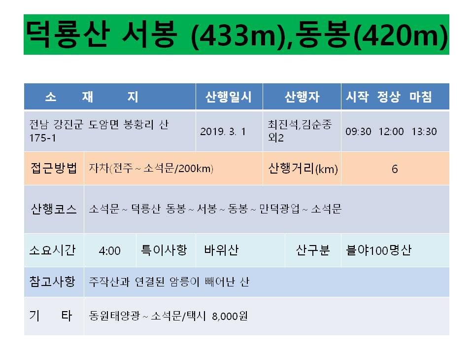 오늘은 블랙야크 100대 명산 리스트에 있는 덕룡산을 산행하기로 약속하였기에 06:30 다오라교회 앞으로 나갔습니다.