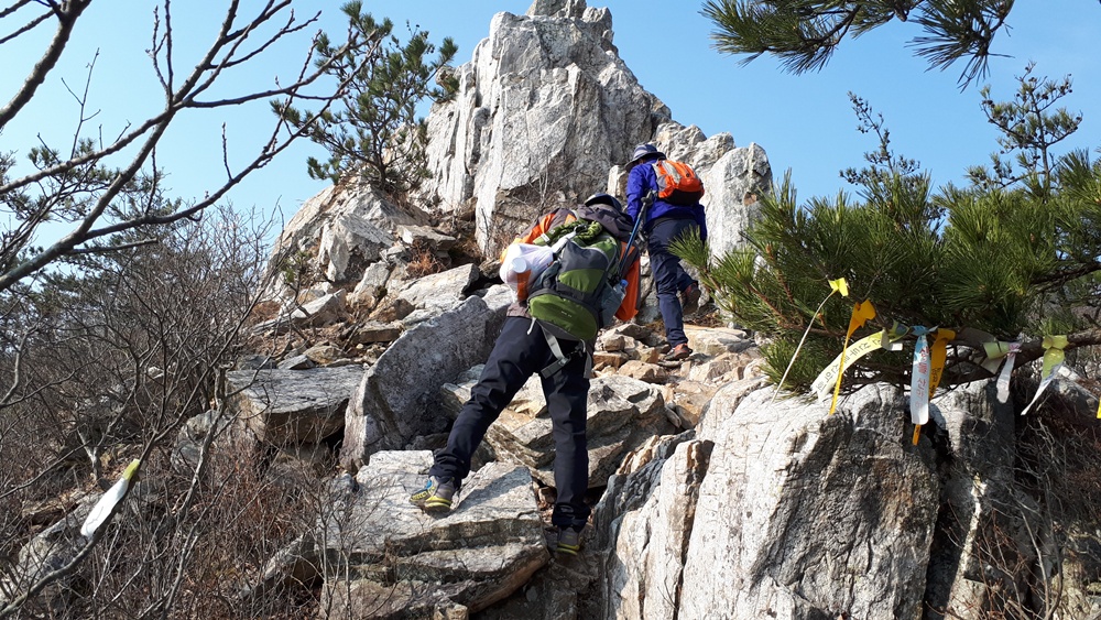 주로 삐쭉삐쭉한 바위로 이루어진 바위산은 쉽게 접근을 허락하지 않아서 땀 흘리며 숨을 몰아쉬며 오르고 내리기를 반복하였습니다.